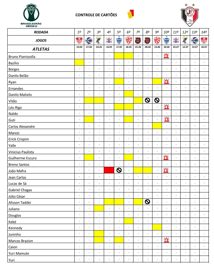 Goleiros: Bruno Pianissola (22 jogos), Bazílio (8 jogos) e Borges (0 jogos)