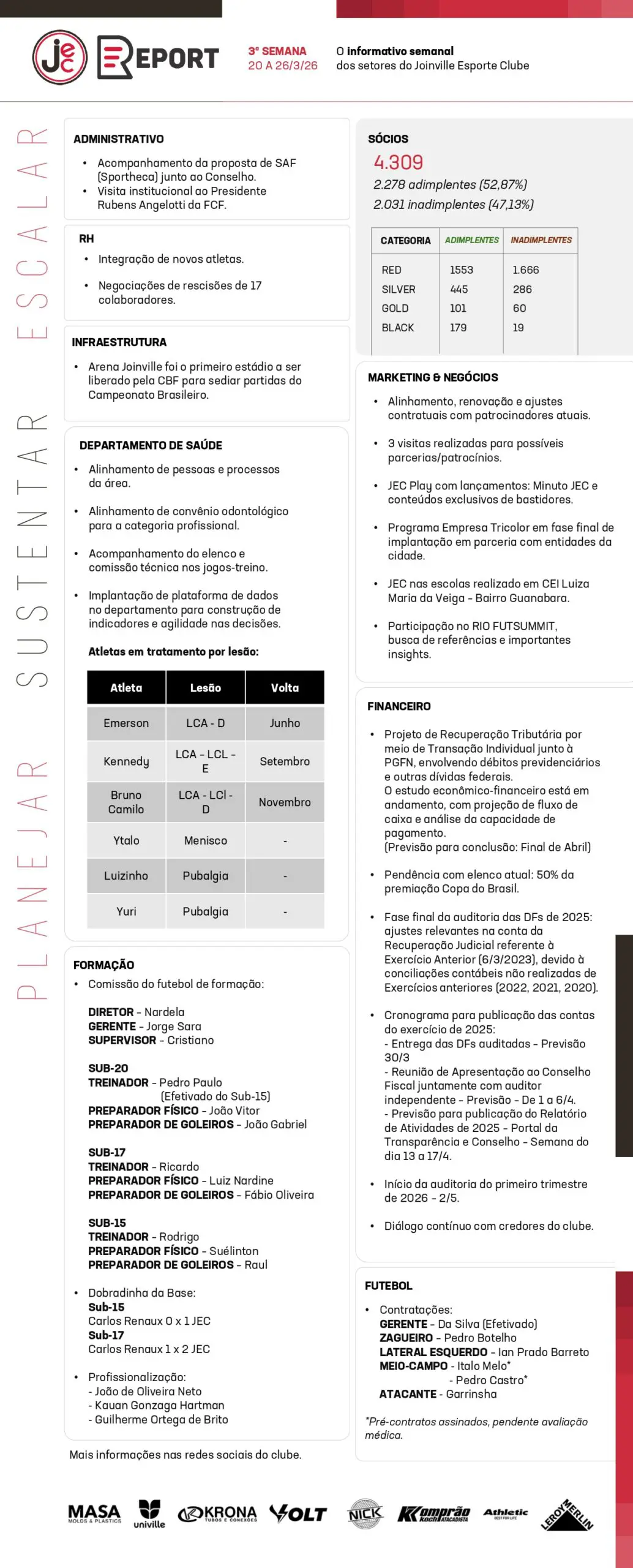 O Joinville Esporte Clube divulga o JEC Report, que chega à sua terceira edição referente ao período de 20 a 26 de março de 2026, e se consolida como uma rotina semanal do clube.