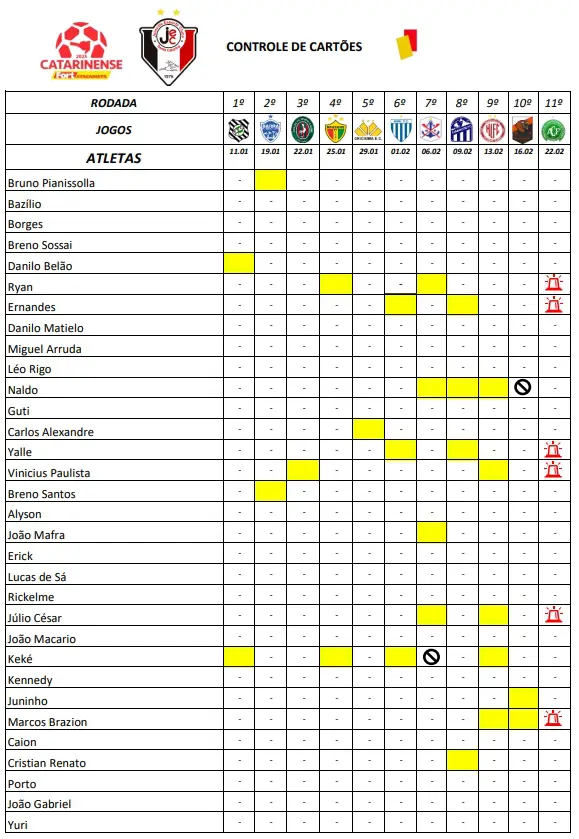 Escalação, atualização de DM e relação dos atletas: divulgado às 15h30 nas redes sociais do JEC e mailing de imprensa.